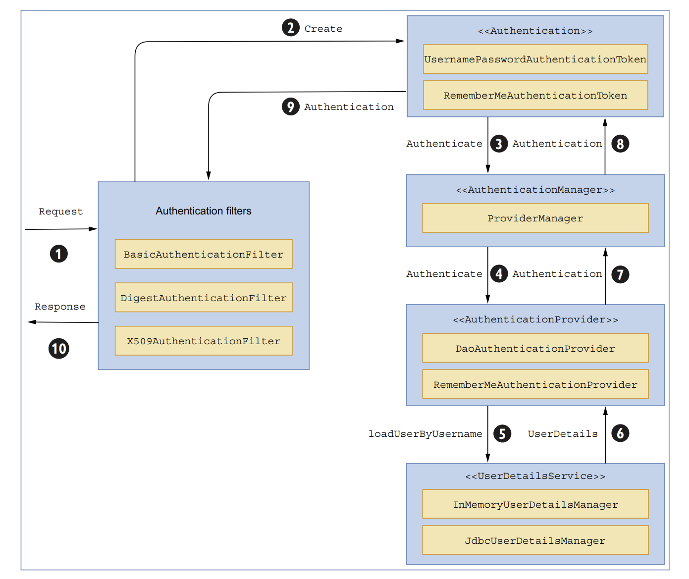AuthenticationProviderleverages the loadedUserDetailsinstance to carry out the actual authentication.The authenticated principal is then returned to the